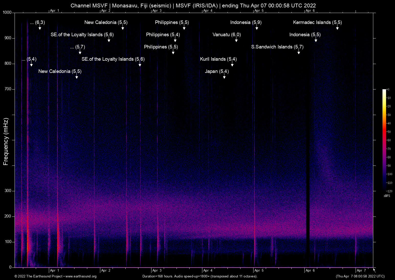 Monasavu, Fiji (seismic) archived on April 6, 2022