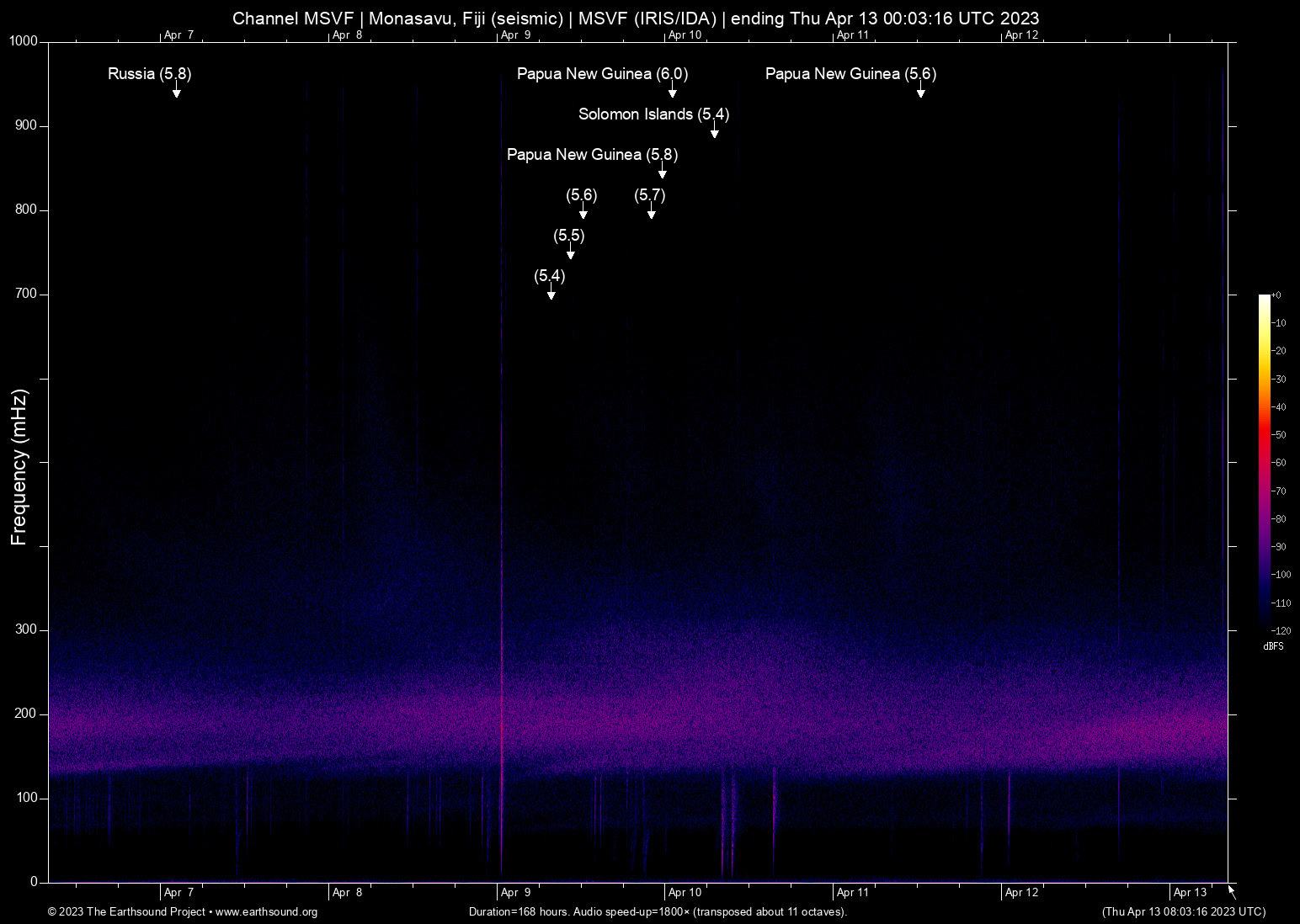 Mon Apr 10 00:05:43 2023 5.4 164.70 -10.78 5 Solomon Islands (120 km W of Lata, Solomon Islands)