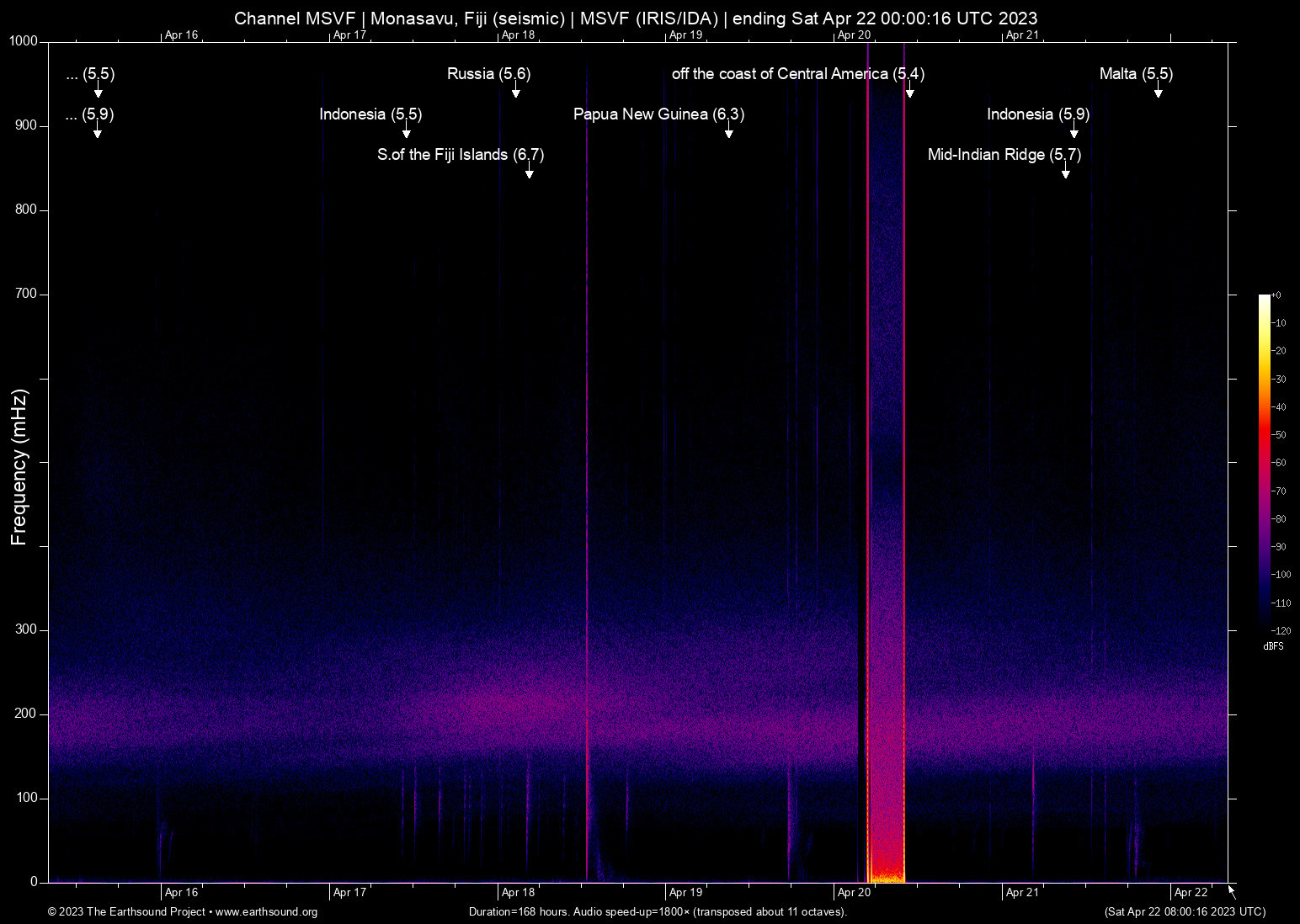 Monasavu, Fiji (seismic) archived on April 21, 2023