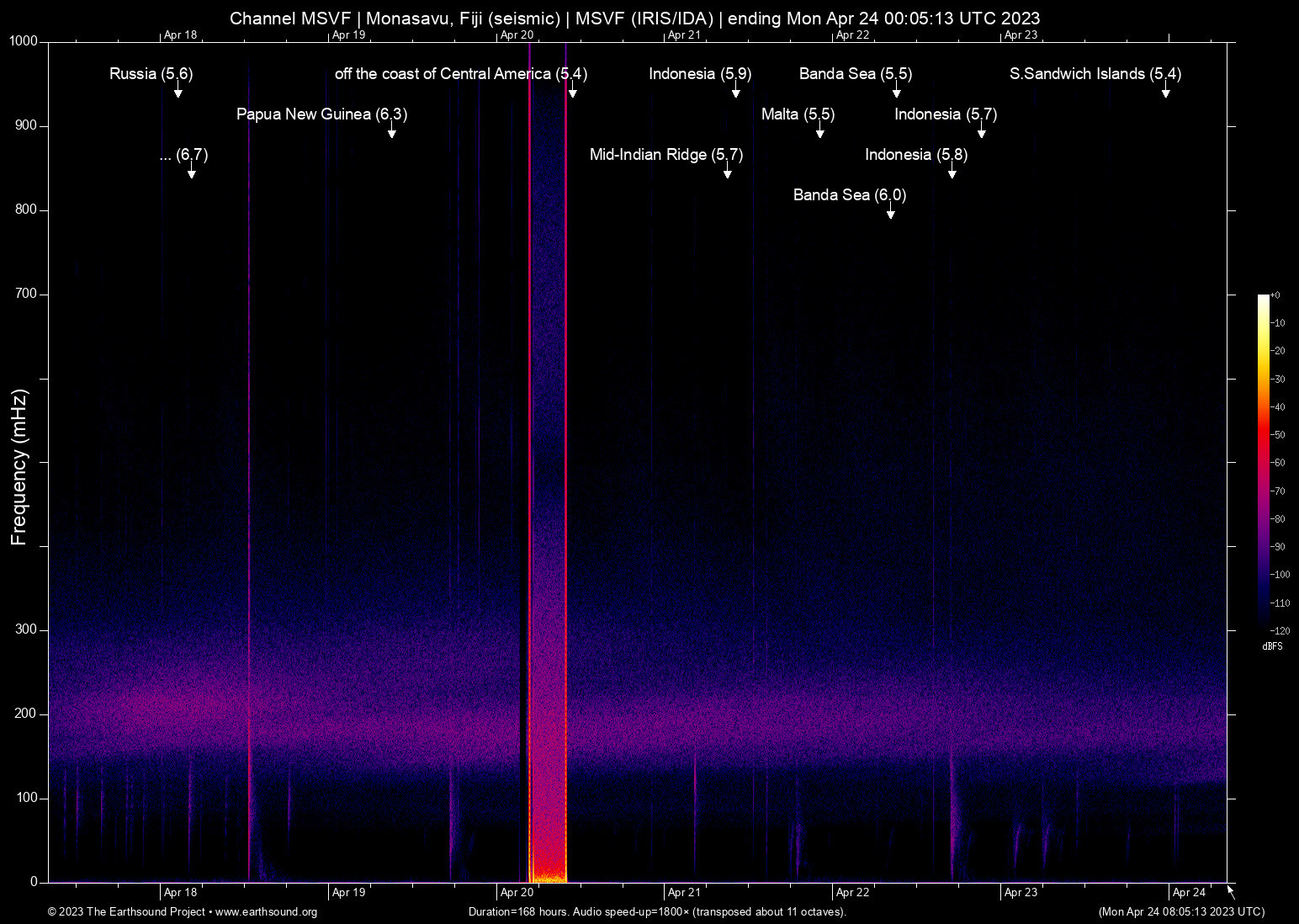 Monasavu, Fiji (seismic) archived on April 23, 2023