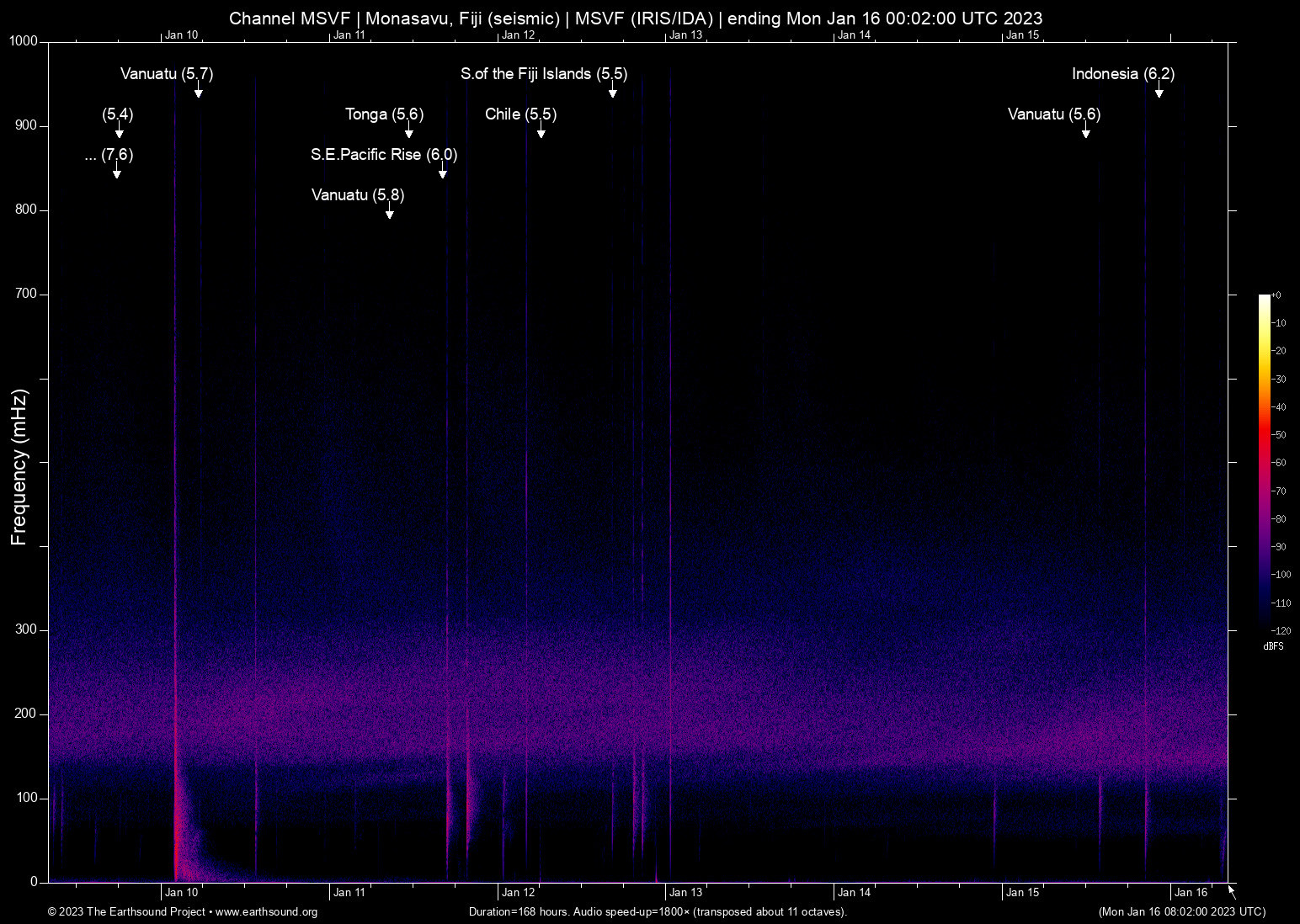 Monasavu, Fiji (seismic) archived on January 15, 2023