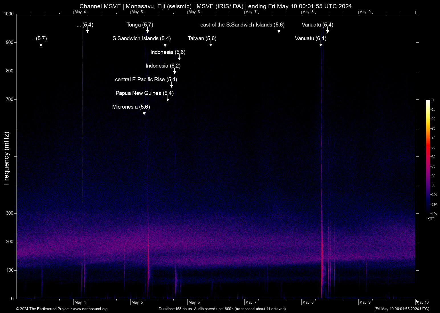 Wed May 8 11:06:19 2024 5.4 168.12 -15.26 5 Vanuatu (106 km ENE of Luganville, Vanuatu)