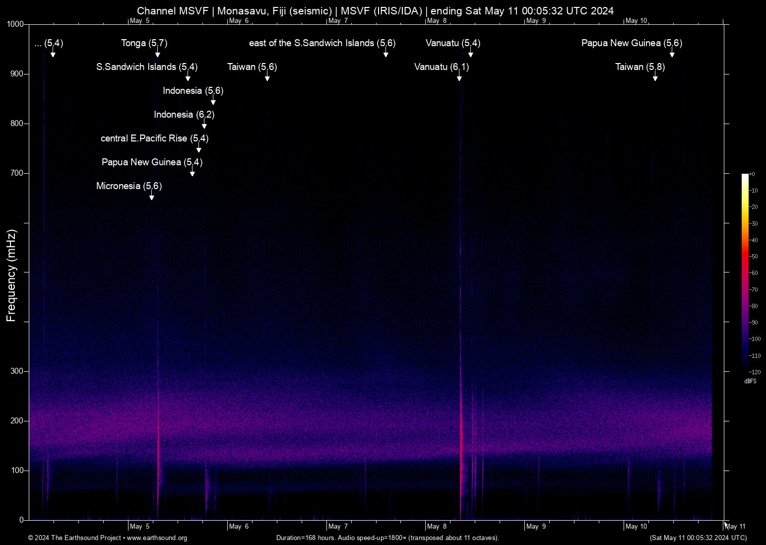 Wed May 8 11:06:19 2024 5.4 168.12 -15.26 5 Vanuatu (106 km ENE of Luganville, Vanuatu)