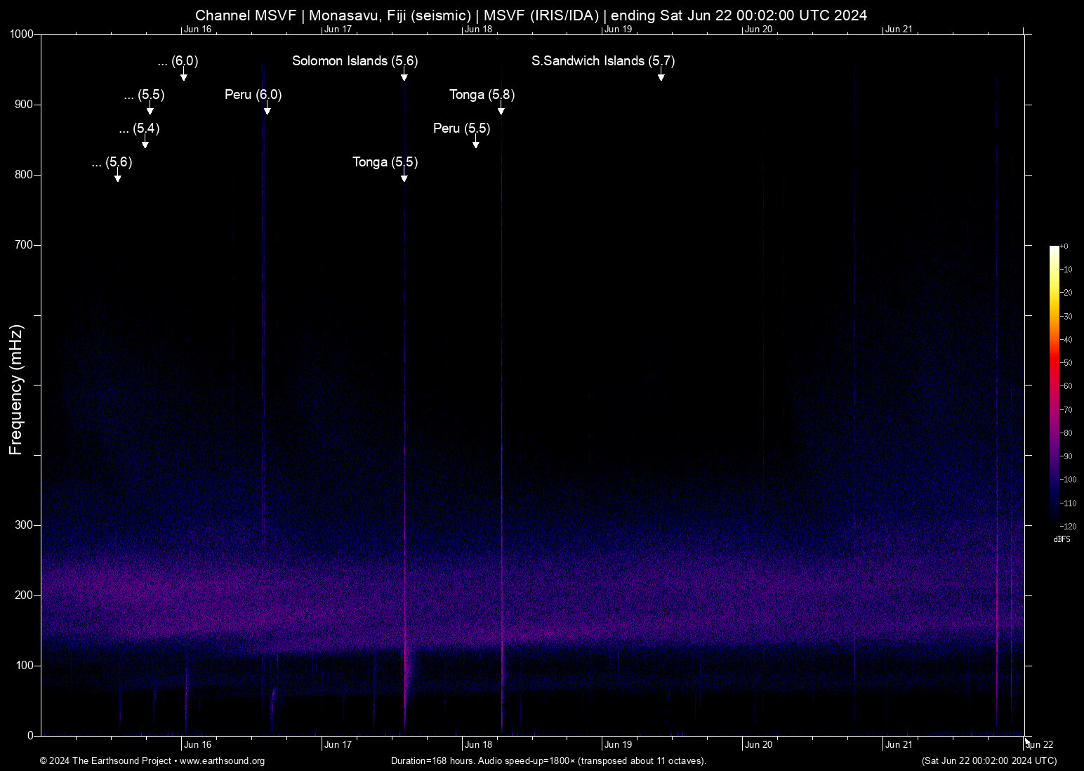Mon Jun 17 14:05:14 2024 5.5 -173.28 -18.82 6 Tonga (76 km ESE of Neiafu, Tonga)