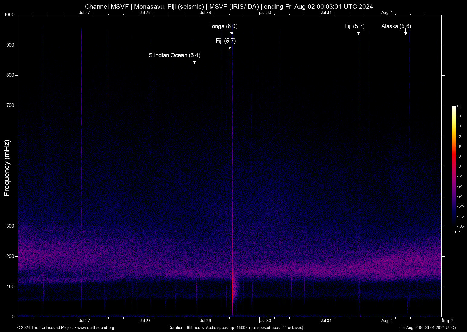 Thu Aug 1 10:03:13 2024 5.6 -159.70 54.11 6 Alaska (145 km SSE of Sand Point, Alaska)
