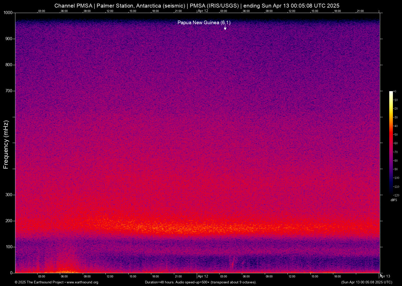 Sat Apr 12 03:47:09 2025 6.1 -4.69 153.15 6 Papua New Guinea (105 km ESE of Kokopo, Papua New Guinea)