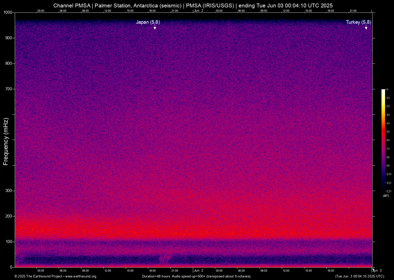 | Data channels : | miniseed (IU.PMSA.00.BH1 IU.PMSA.00.BH2) |