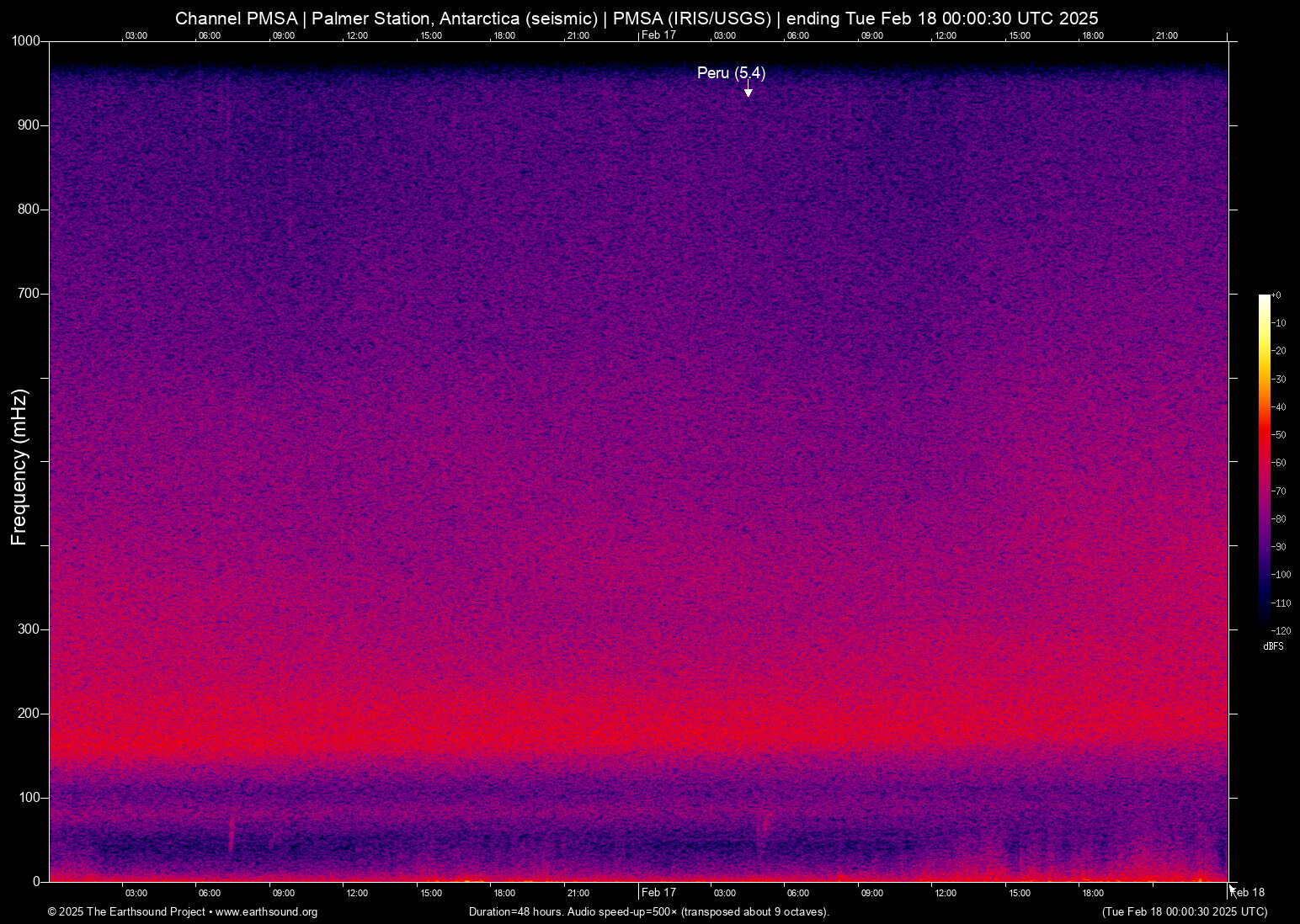 Mon Feb 17 04:30:55 2025 5.4 -16.01 -75.18 5 Peru (71 km S of San Juan, Peru)