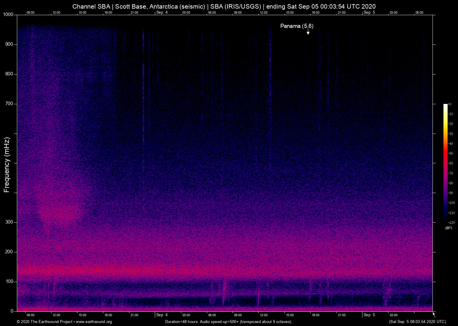 Fri Sep 4 10:45:21 2020 5.6 -82.98 8.34 6 Panama (12 km WSW of Finca Blanco, Panama)