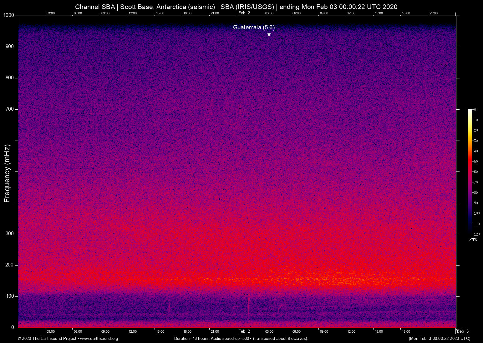 Sun Feb 2 03:32:44 2020 5.6 -92.83 13.80 6 Guatemala (104km SW of Ocos, Guatemala)