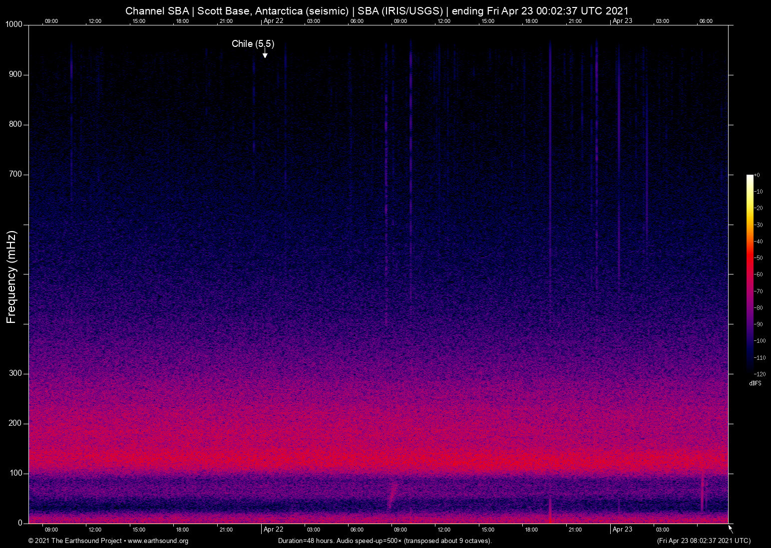 Wed Apr 21 17:17:14 2021 5.5 -72.34 -33.99 6 Chile (80 km WSW of San Antonio, Chile)