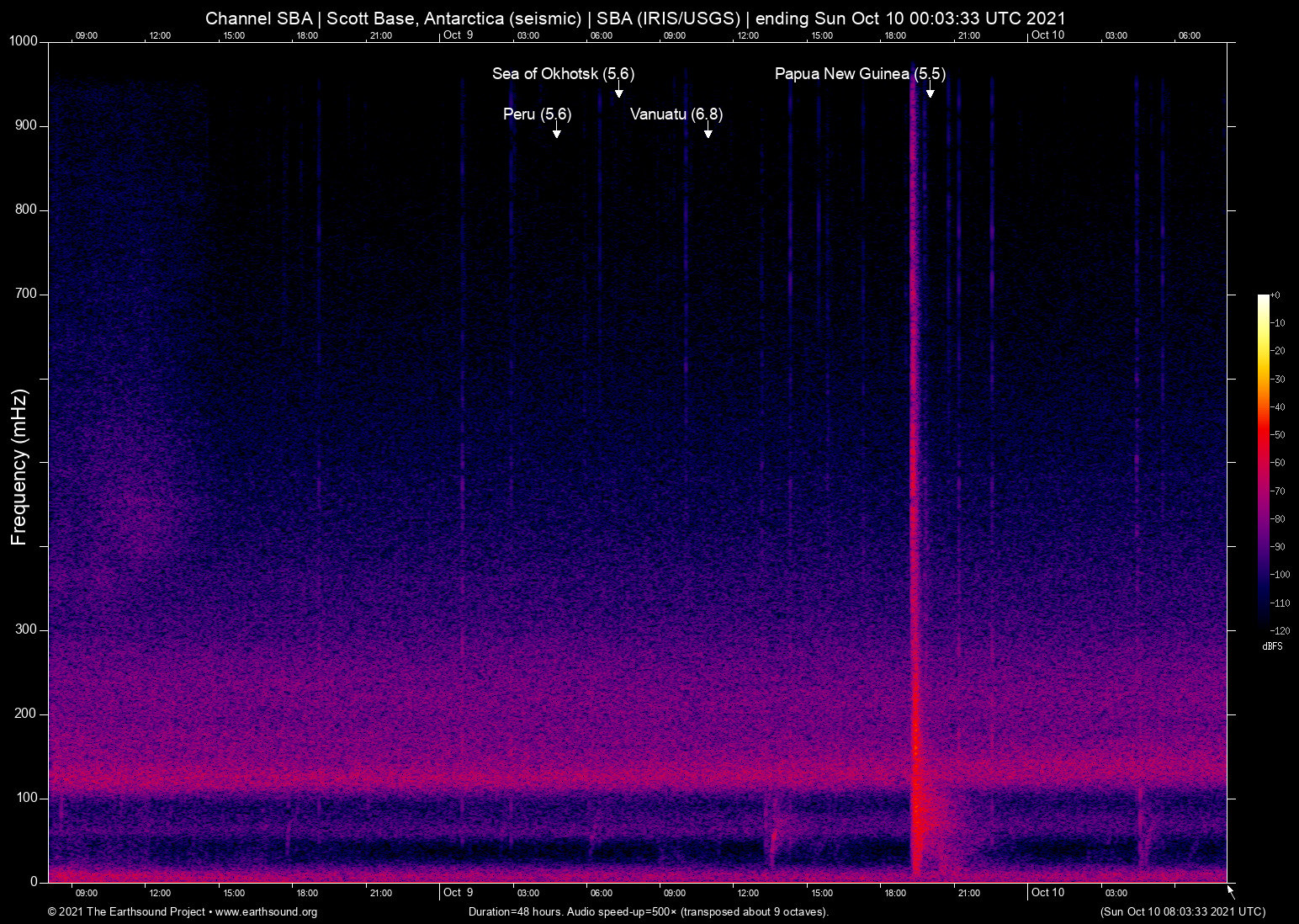 Sat Oct 9 13:01:50 2021 5.5 153.03 -4.65 6 Papua New Guinea (91 km ESE of Kokopo, Papua New Guinea)