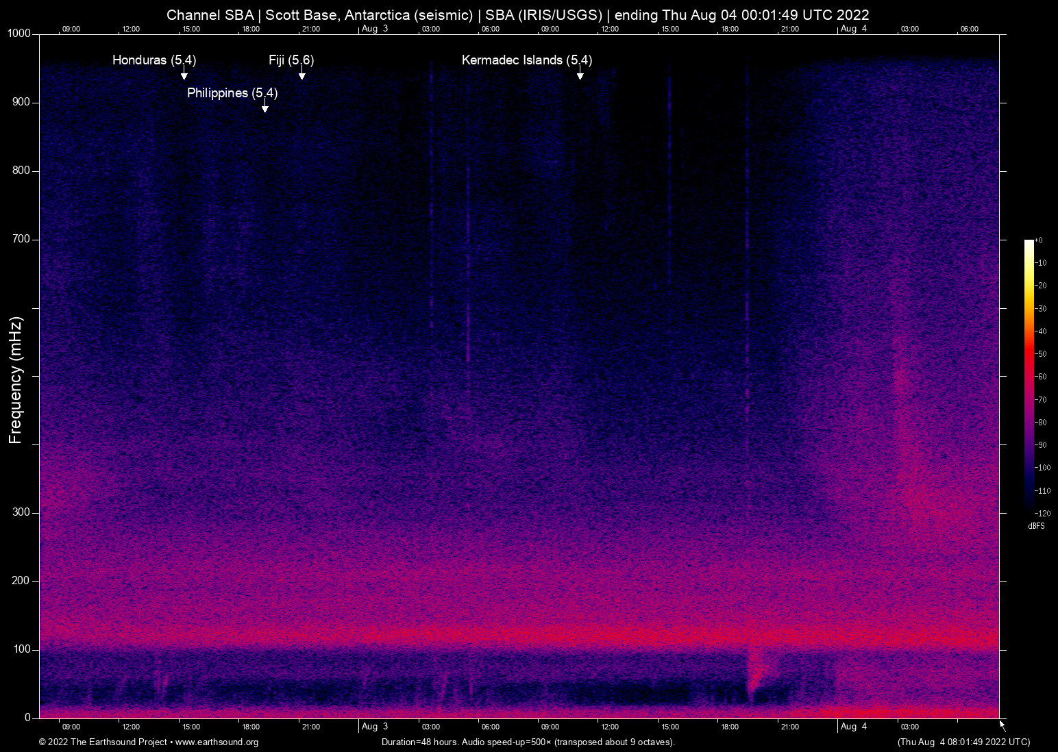 Wed Aug 3 04:07:52 2022 5.4 -176.17 -27.39 5 Kermadec Islands (Kermadec Islands region)