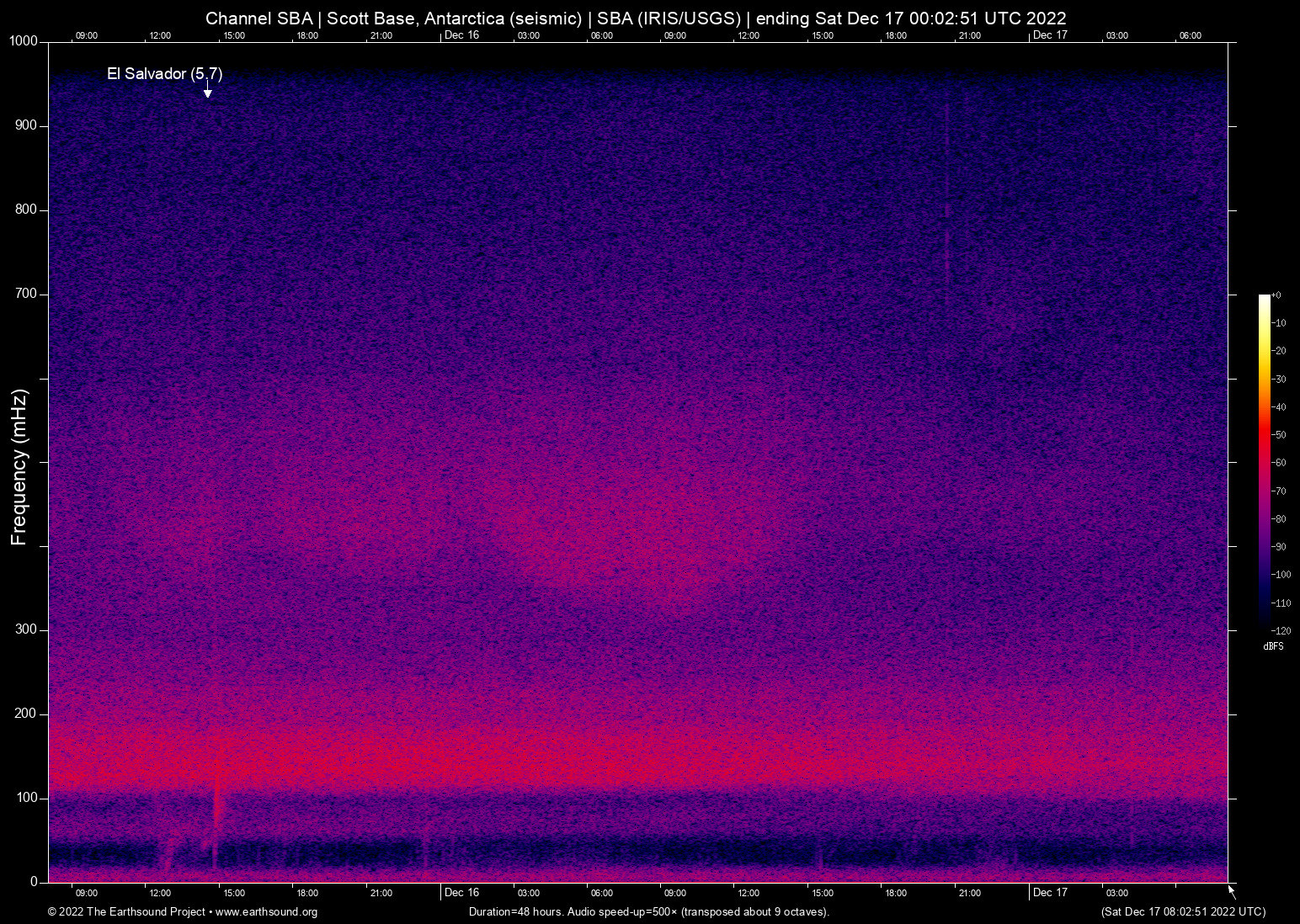 Thu Dec 15 06:32:23 2022 5.7 -88.45 12.94 6 El Salvador (39 km SSE of Puerto El Triunfo, El Salvador)