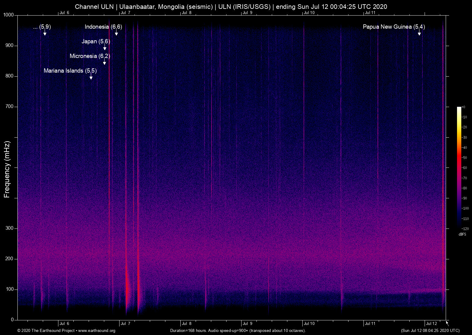 Sun Jul 5 11:50:01 2020 5.9 167.36 -14.93 6 Vanuatu (33 km ENE of Port-Olry, Vanuatu)