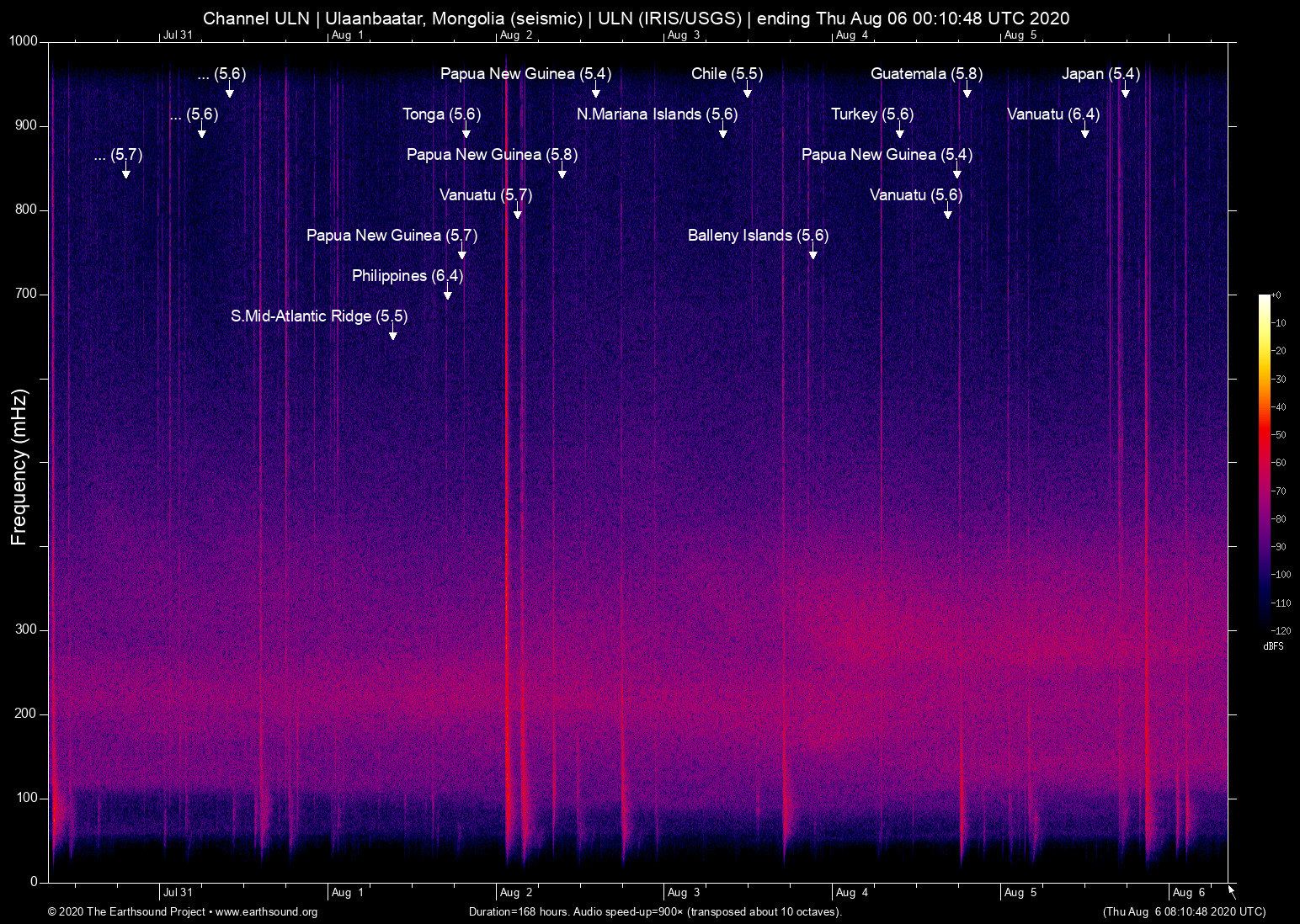 Sun Aug 2 07:15:47 2020 5.4 145.39 -5.10 5 Papua New Guinea (46 km WNW of Madang, Papua New Guinea)