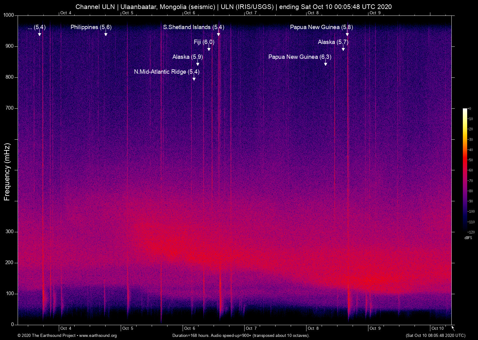 Thu Oct 8 07:22:39 2020 5.7 -168.26 52.72 6 Alaska (47 km ESE of Nikolski, Alaska)