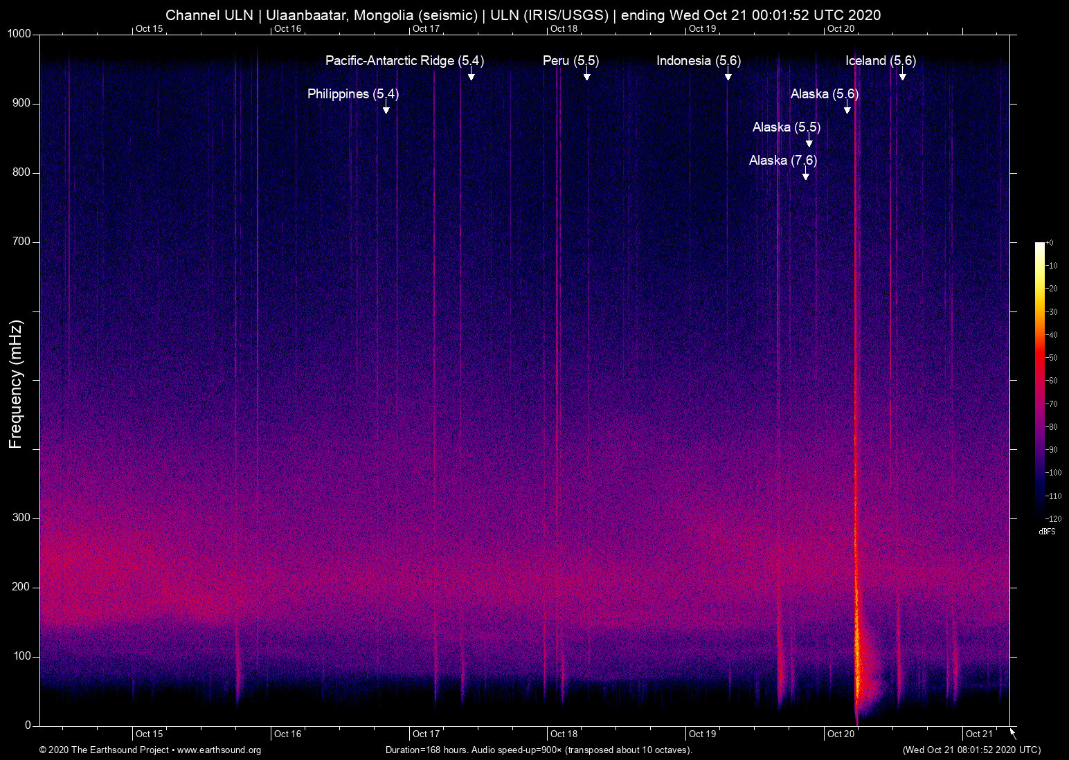 Mon Oct 19 13:54:39 2020 7.6 -159.66 54.61 8 Alaska (97 km SSE of Sand Point, Alaska)