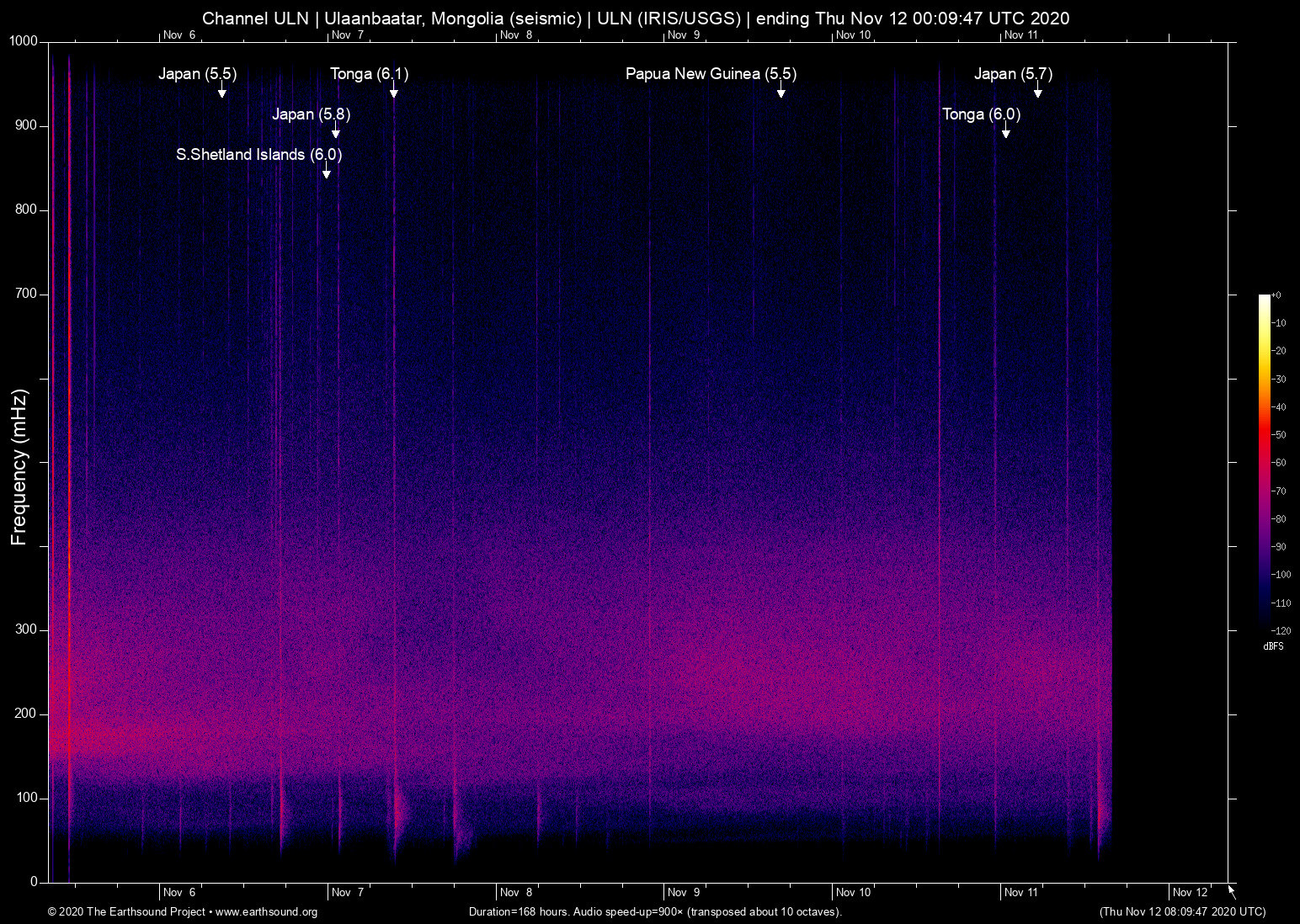 Sat Nov 7 01:27:04 2020 6.1 -173.56 -15.27 6 Tonga (79 km NNE of Hihifo, Tonga)