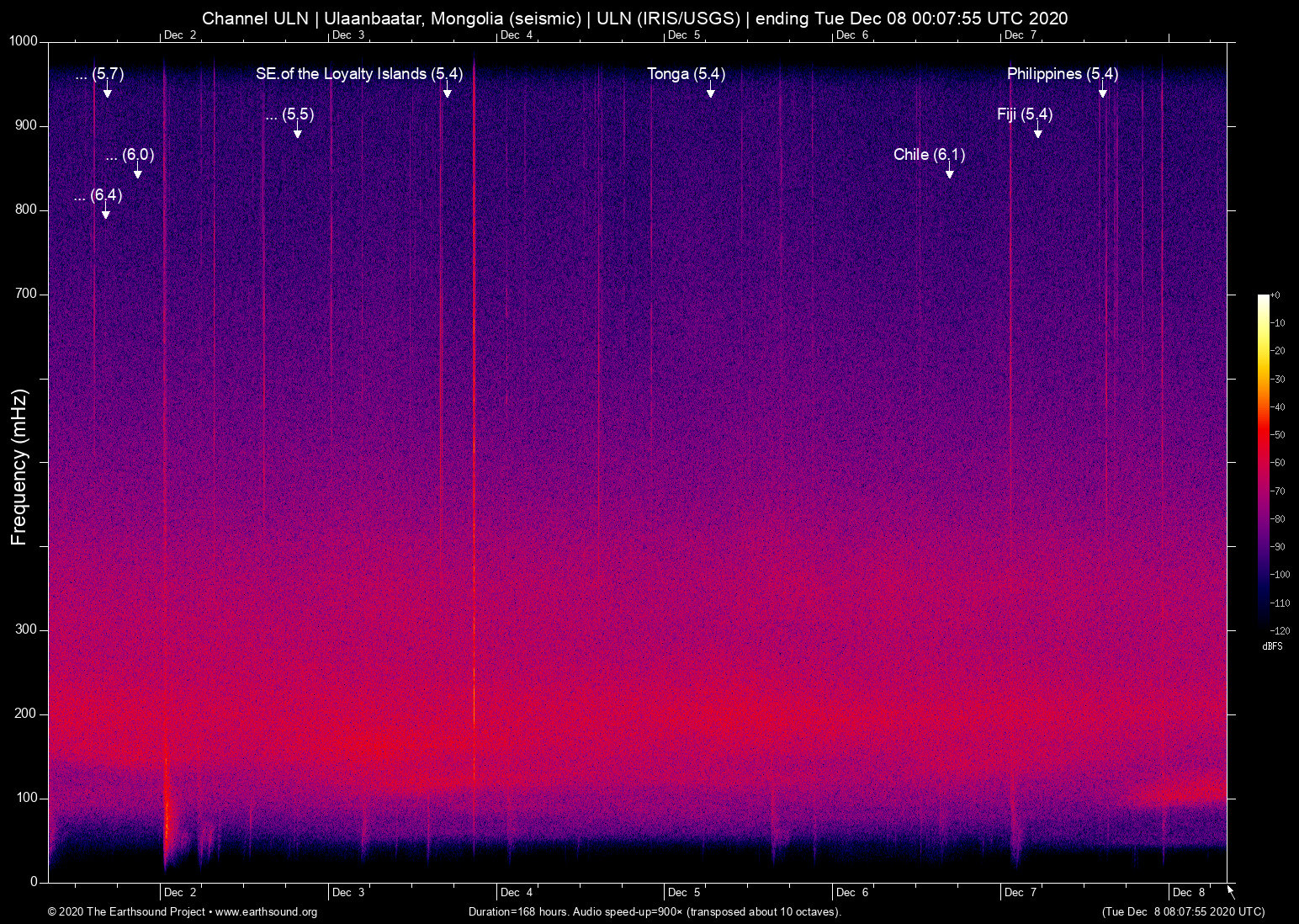 Tue Dec 1 08:22:39 2020 6.4 -168.27 52.77 6 Alaska (44 km ESE of Nikolski, Alaska)