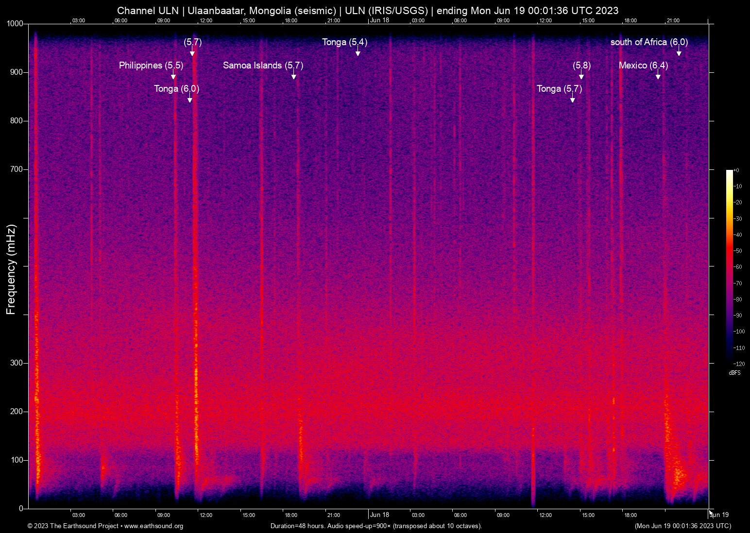 Sat Jun 17 11:26:21 2023 6.0 -175.43 -23.44 6 Tonga (237 km SSW of ‘Ohonua, Tonga)