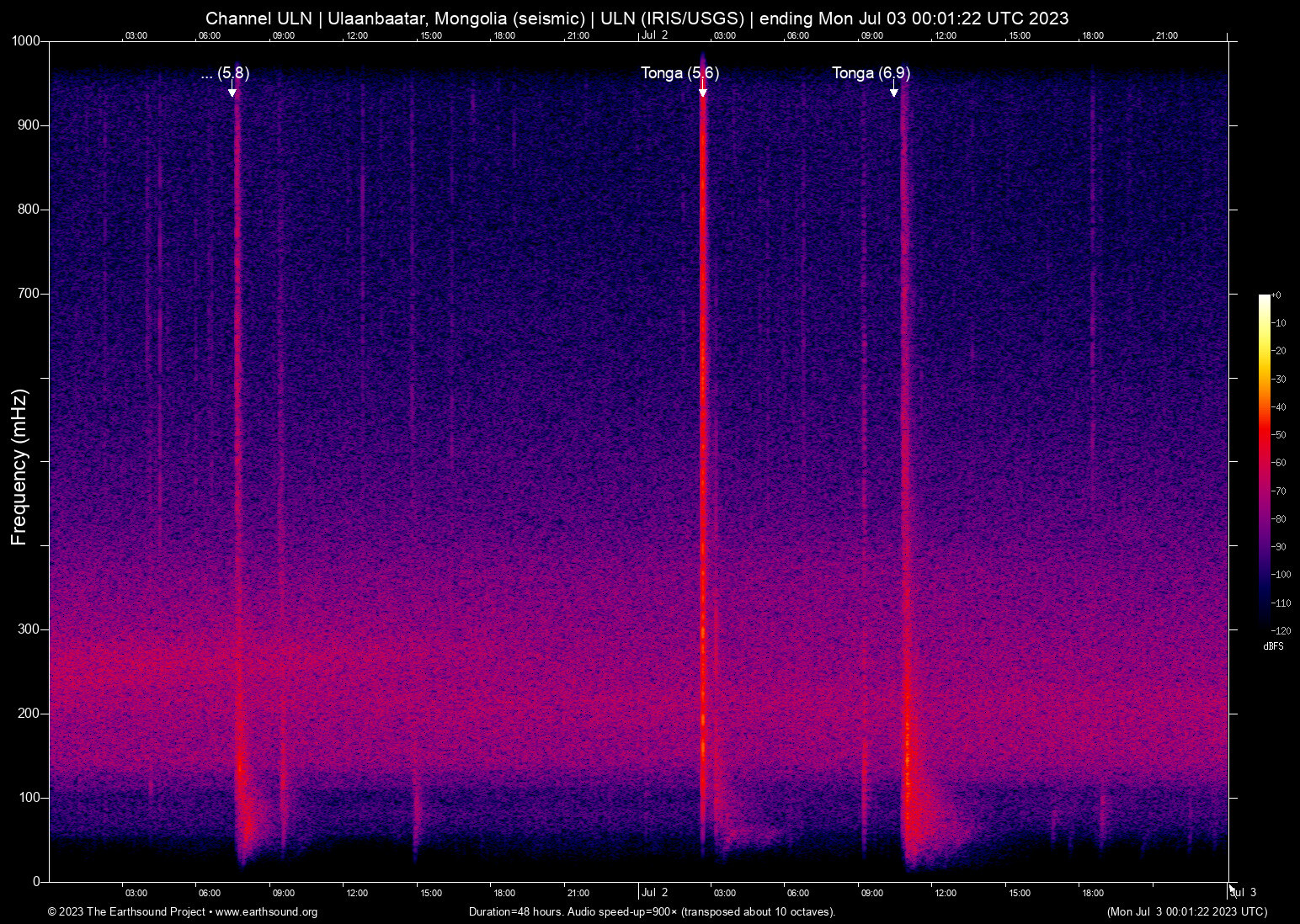 Sun Jul 2 02:41:17 2023 5.6 -175.59 -23.54 6 Tonga (252 km SSW of ‘Ohonua, Tonga)