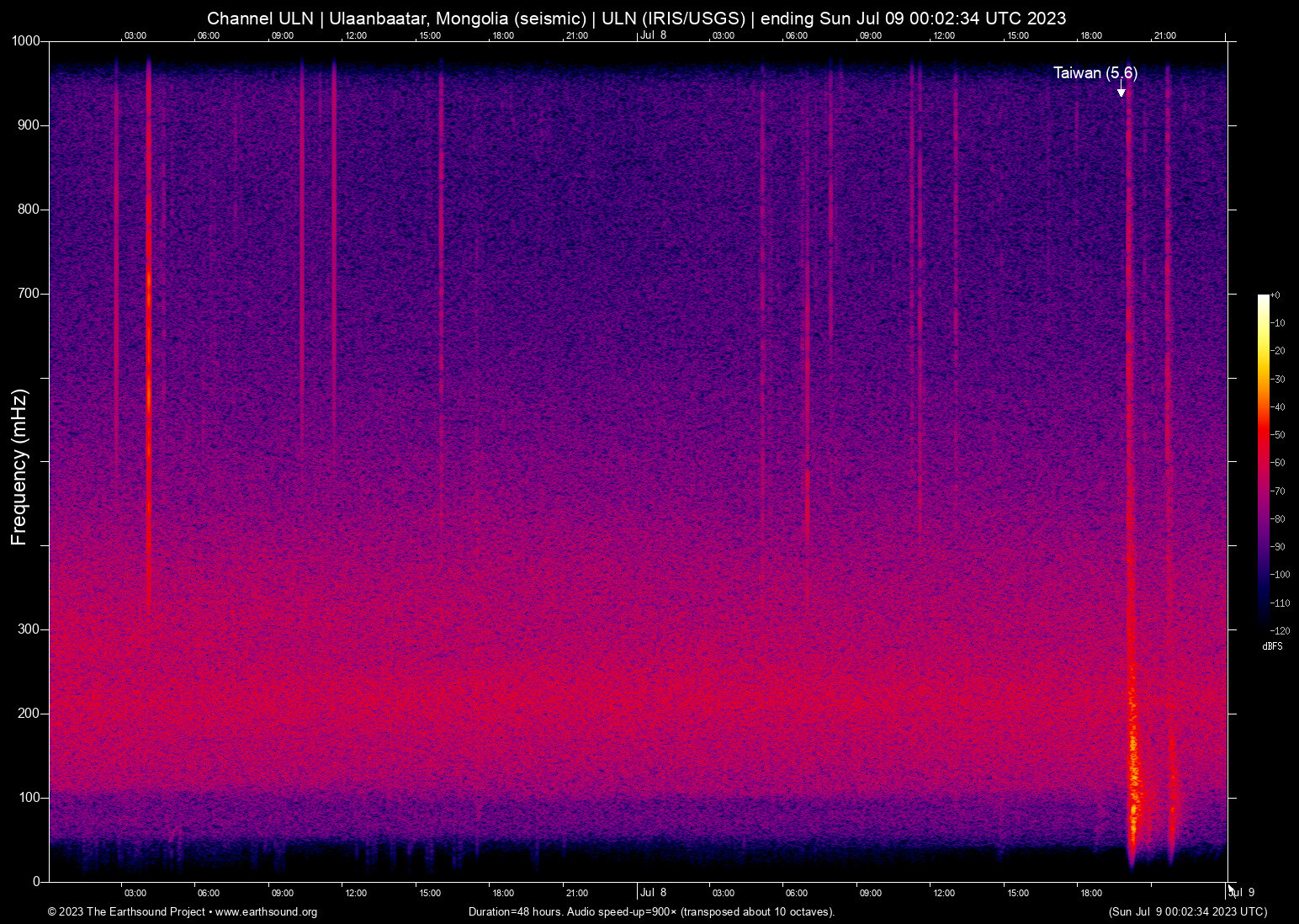 Sat Jul 8 19:47:11 2023 5.6 121.58 21.90 6 Taiwan (87 km E of Hengchun, Taiwan)