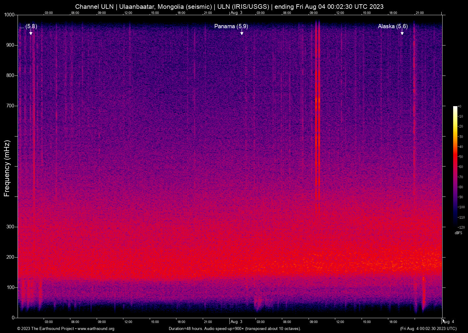 Thu Aug 3 19:33:51 2023 5.6 -161.04 54.66 6 Alaska (82 km SSW of Sand Point, Alaska)