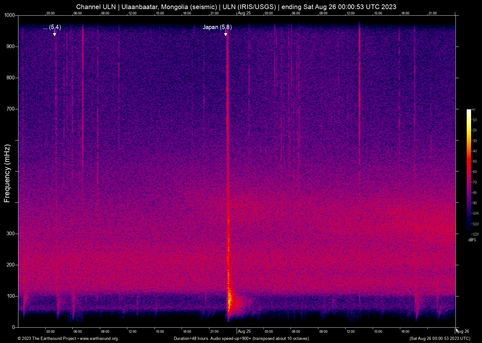 | Data channels : | miniseed (IU.ULN.00.BH1 IU.ULN.00.BH2) |