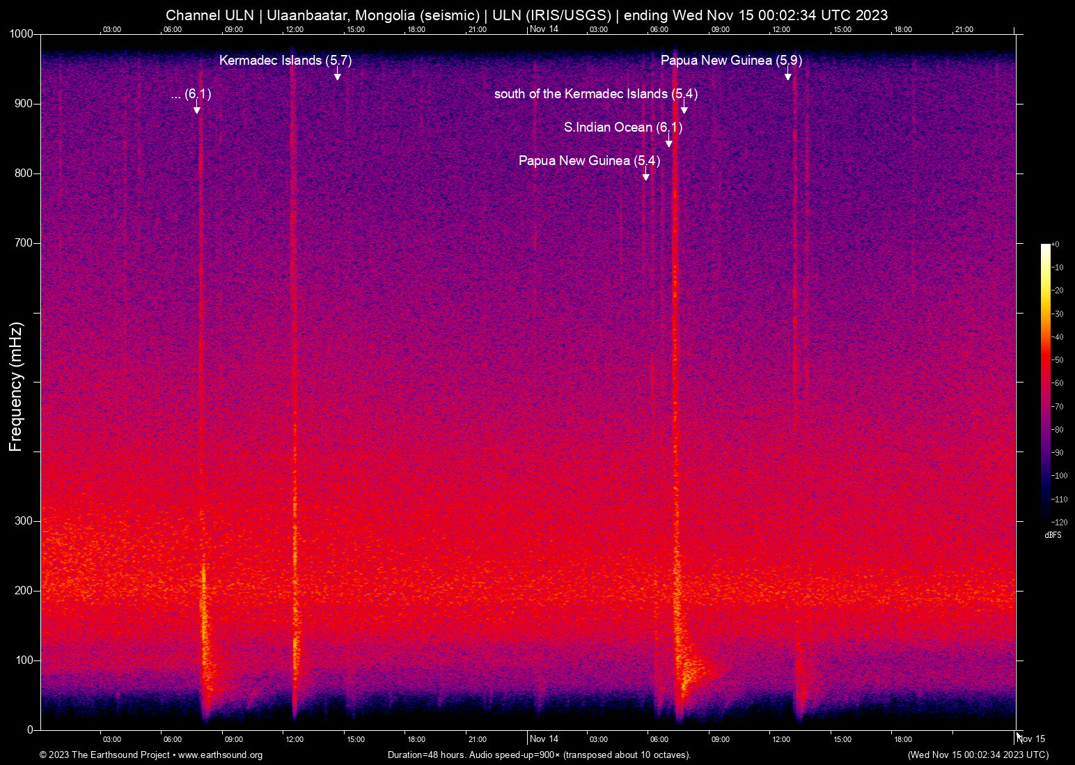 Mon Nov 13 07:43:32 2023 6.1 150.97 -3.92 6 Papua New Guinea (135 km WNW of Rabaul, Papua New Guinea)