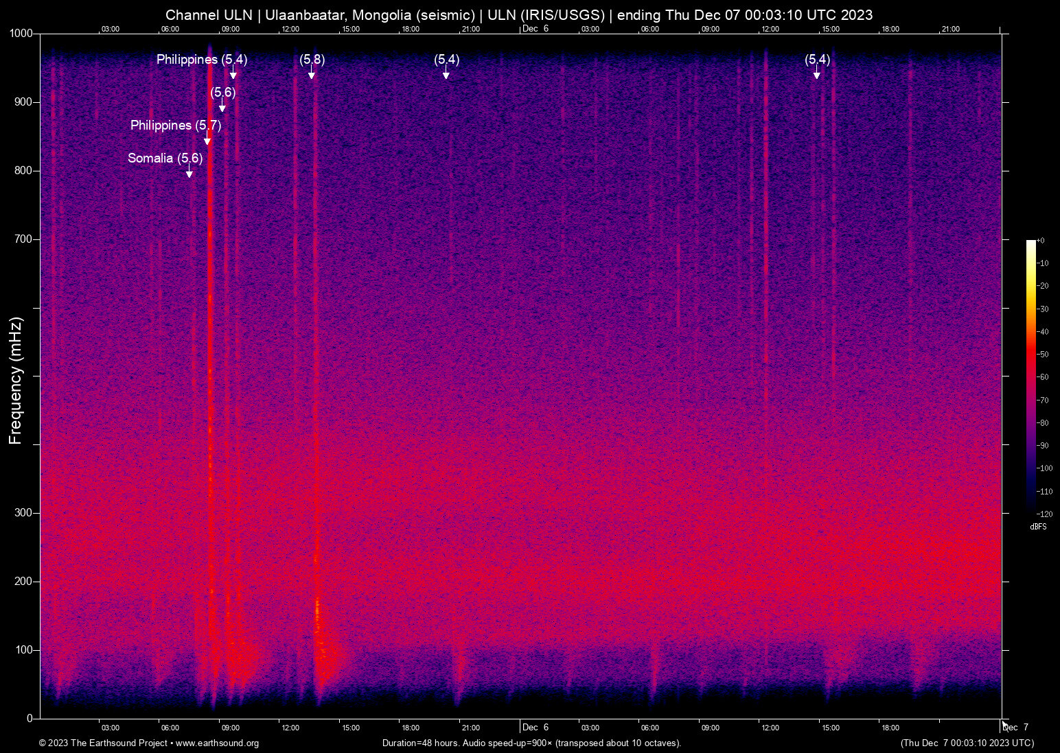 Tue Dec 5 08:23:55 2023 5.7 120.46 13.93 6 Philippines (17 km W of Talisay, Philippines)