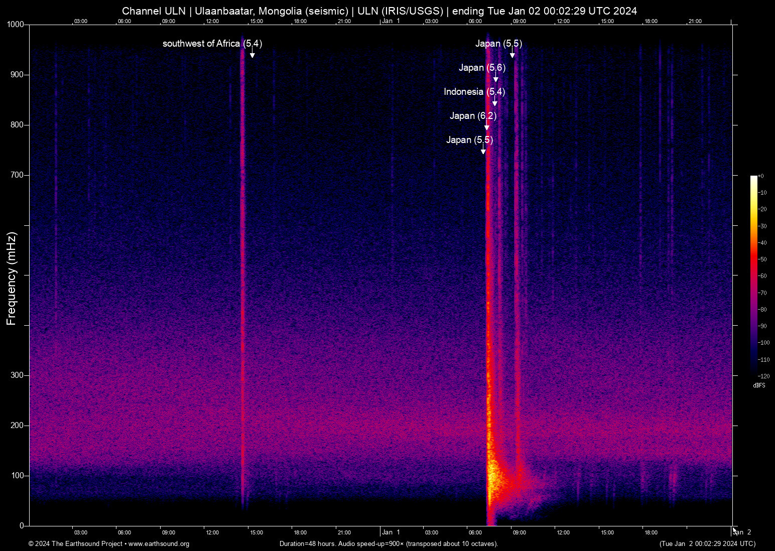 Mon Jan 1 09:08:17 2024 5.6 137.41 37.52 6 Japan (55 km NE of Anamizu, Japan) *